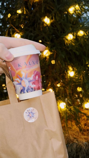 Beyond the coffee tins, this illustration was also showcased on all winter coffee cups, offering a festive experience to Kalve Coffee visitors. Additionally, the design appeared on other physical elements, such as stickers on paper bags, and was incorporated into Kalve's internal marketing communication materials.