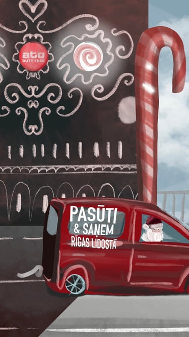 For the 2024 holiday season, I had the opportunity to collaborate with ATU Duty Free Riga to create a special illustrated short film that tells the heartwarming story of how their employees helped bring Christmas to children from families in need. The film features the song "Ziemassvētku dāvaniņas" by Rolands Ūdris, setting a magical, cozy, and festive atmosphere.