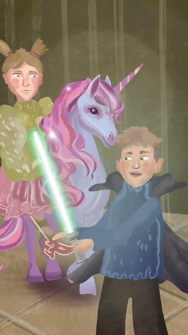 As part of this project, I also created a separate animated story that expands on the illustration's theme, exploring its meaning in greater depth. This animation introduces additional characters, such as a lost boy in the forest and little fairies of the light, adding layers to the narrative. You can watch the full animated story here: Pathway to the Light – Animation.